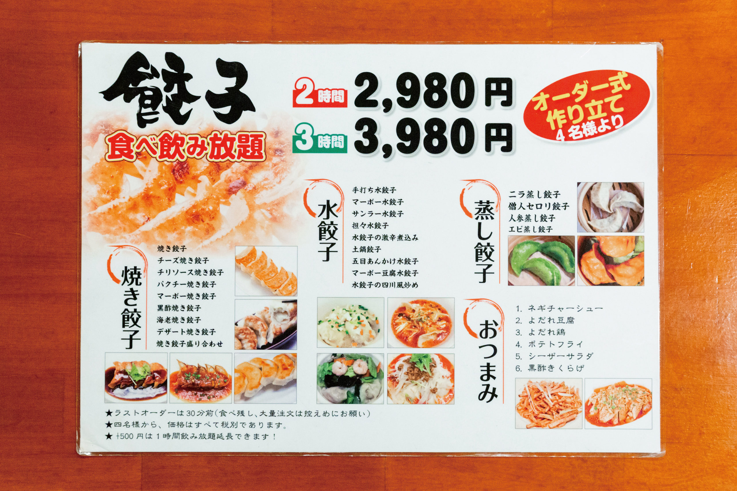 常時18種類ある餃子は皮から全て手作り。定番の焼きをはじめ、水餃子、揚げ餃子、麻婆焼き餃子、チリソース焼き餃子、パクチー焼き餃子など、いろんな餃子がお楽しめます。飲み放題のコースでは20種類以上もの餃子が食べ放題。