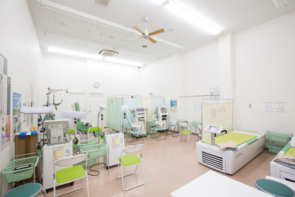 腰痛や膝、関節痛などの整形外科、リウマチ、リハビリテーション科の他、靴外来や骨粗しょう症の検査と治療を行っています。主に牽引や温熱療法など機械を使った治療を実施。バリアフリーな院内は車いすでの移動が可能です。