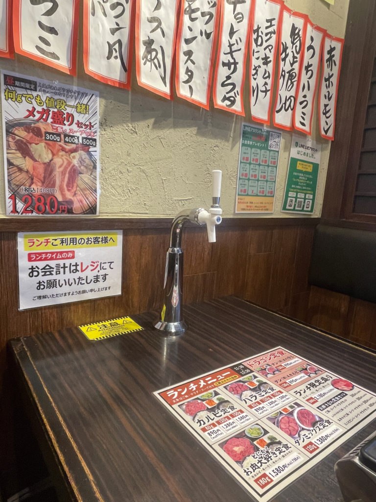企業努力と独自の仕入れで、他では食べられない価格で美味しい肉を提供。鮮度にこだわった芝浦直送のホルモンは一度食べたらリピート間違いなしの絶品です。和牛カルビ、牛ハラミなどが480g入った贅沢盛りはほとんどの人が注文する人気メニュー。さらに全卓にレモンサワーサーバを設置し、60分500円(税込550円)で飲み放題。移動することなく何回でもおかわりできるので、居酒屋よりもお得に楽しめると評判です。店長の奥さんの実家の老舗の焼肉屋さんから受け継いだ秘伝のタレを使ったタレ焼肉はぜひ食べてほしい一皿。4~6名が座れるテーブルがメインの広々とした店内はお子様連れでも安心です。ランチはボリューム満点でお得! 昼も夜もコスパの良い焼肉店です。