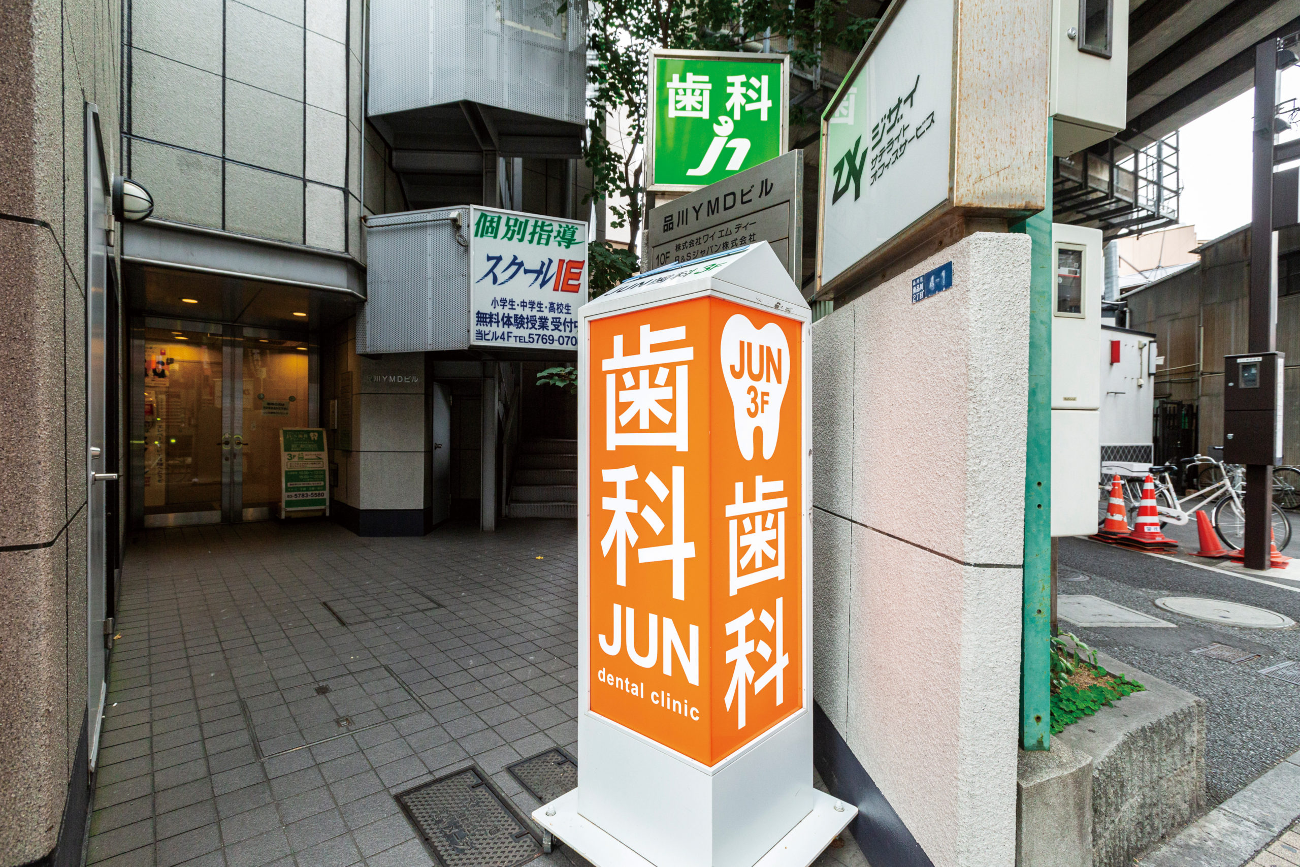 Located right next to the police box across fromAomonoyokochou station, “Jun Shika Clinic”, a dentalclinic, specializes in implants and cosmetic dentistrytreatments. The trained and knowledgeable staffall belong to the International Congress of OralImplantologists (ICOI). The design of the new signboard has been renewed for its 15th anniversary.