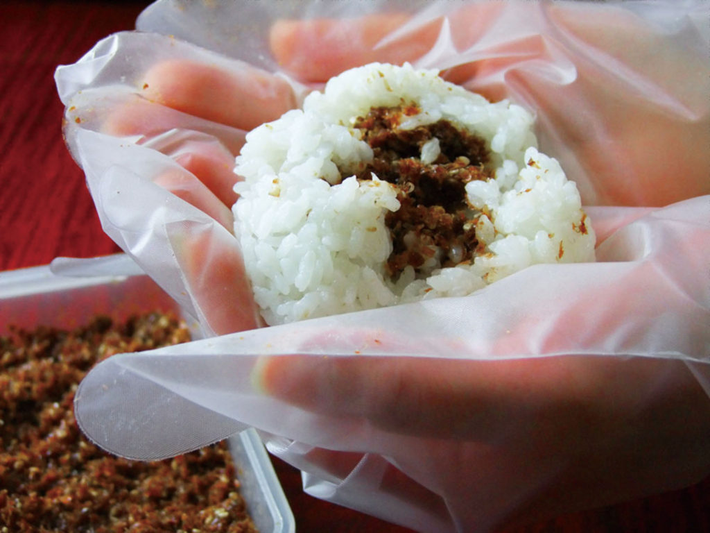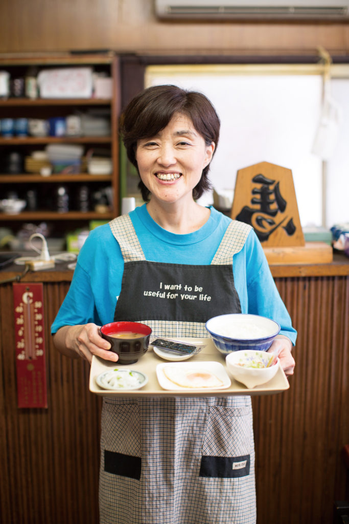 The diner opens at 5:45 am and sells individuallyhand-made onigiri(rice balls) of many different kindsincluding, salmon, pickled plum, and konbu (seaweed).Each rice ball starts from 100 yen. Breakfast set mealssuch as the Grilled Salmon Set and the Sunny Side UpEggs Set (each 500 yen) can be ordered until 10 AM.Set meals also available for takeout!