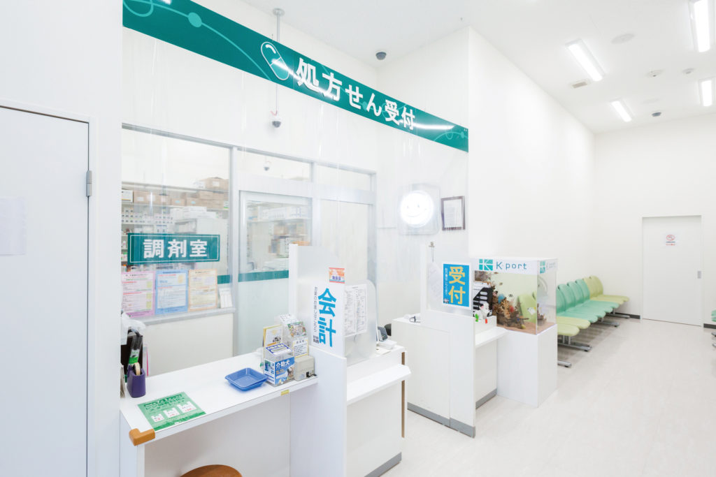 2019年8月より、ドラッグストアから調剤メインの薬局にリニューアル。ただし一部市販薬の取り扱いもあり、他店舗からお取り寄せも対応可能です。受付横の水槽で泳ぐ熱帯魚にも心癒されますよ。