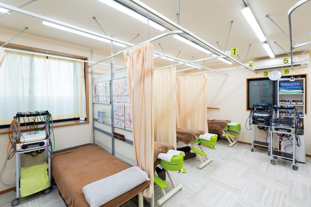 令和4年移転に伴いリニューアル。整体や鍼、お灸を用いて肩こりや腰痛などの治療を行います (保険適用)。お年寄りや成長期の子供に起 こる関節疾患にも対応しています。コロナ対策も万全です。比較的待ち時間が少ないのは夕方以降です。