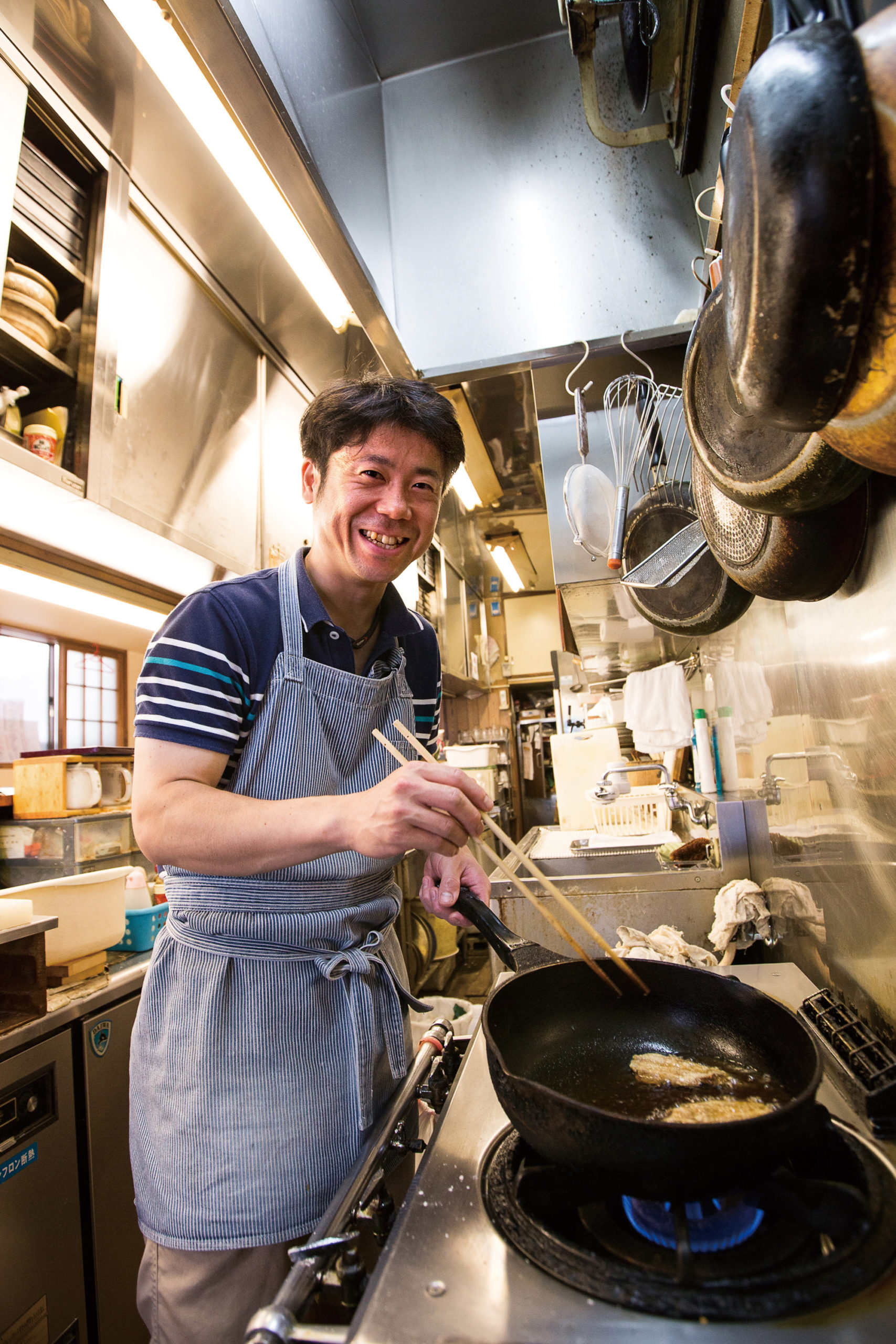 創業53年。家族で経営するとんかつ屋さん。2代目のお父さんが揚げ物を担当し、3代目の息子が刺身や干物などの調理全般を担当します。接客はお母さんが一番人気だそうです。昼は定食、夜はおばんざい料理が人気です。