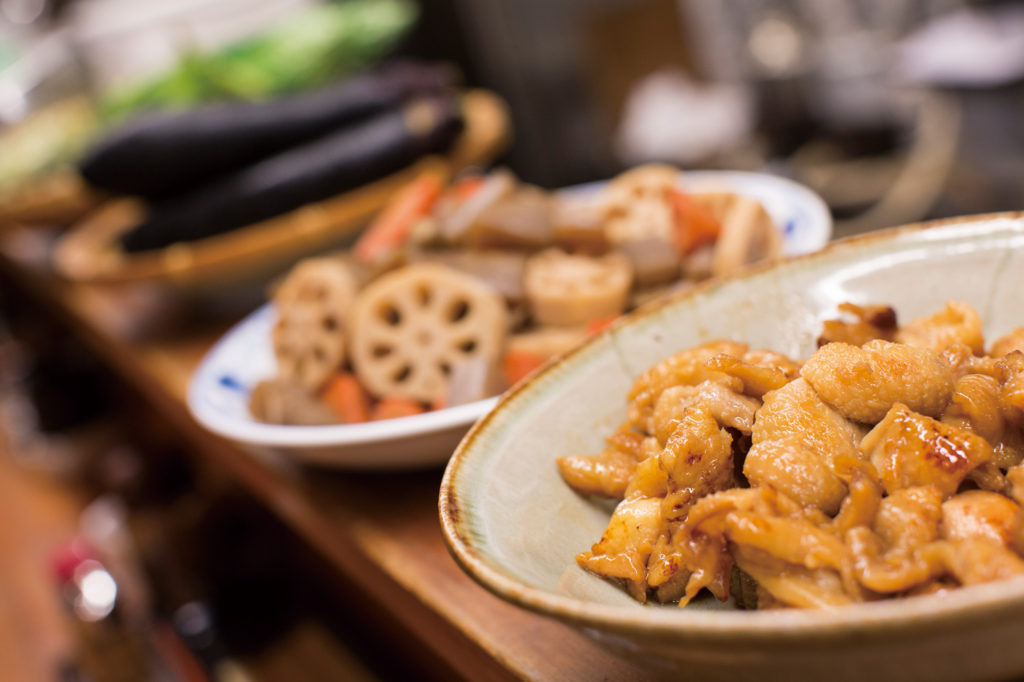 とんかつ店ながらも、カウンターには旬の食材を使った惣菜がずらりと並ぶ「安右衛門」。メインのとんかつはもちろん、種類豊富なおいしいお惣菜が食べられるのも魅力です。定食に添えられるポテトサラダやほうれん草の胡麻和えなどの副菜は全て手づくり。他にも里芋やれんこん、エンドウ豆など旬の野菜を使った料理や、秋冬にはさんまやぶり大根、夏には鰺のたたきなど季節の料理もおすすめです。銀座の天ぷら屋さんで10年修行を積み、多くの調理経験を持つ店長が作る和食は絶品。丁寧でおいしい店長の手料理は、どこかホッとする味でリピーターが多いのも納得です。お惣菜や揚げ物はもちろん、定食をお弁当にしてテイクアウトもできます。