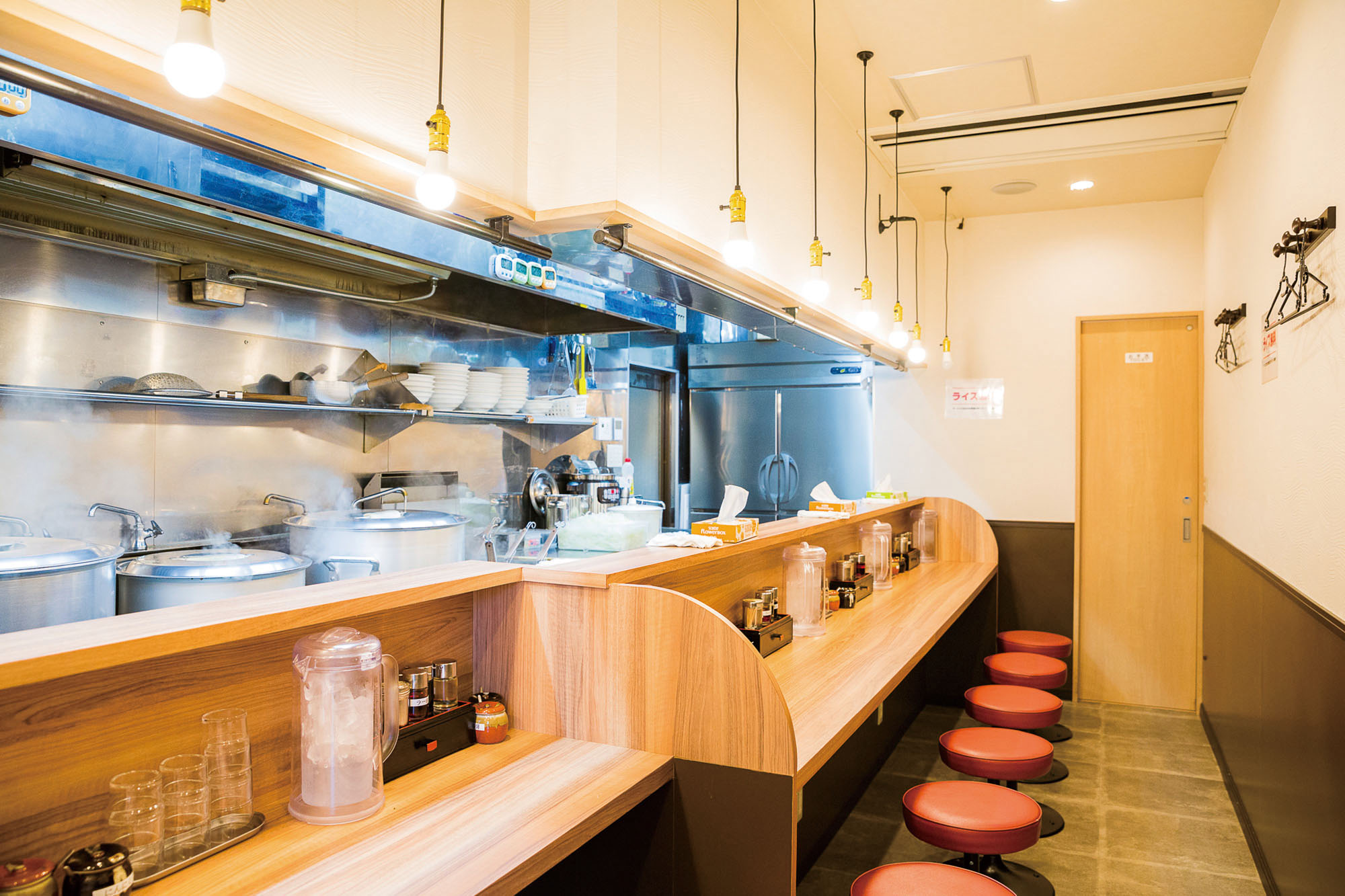 面条是每天早上从横滨面条工厂运来的原味扁平、超厚的直筒面条。