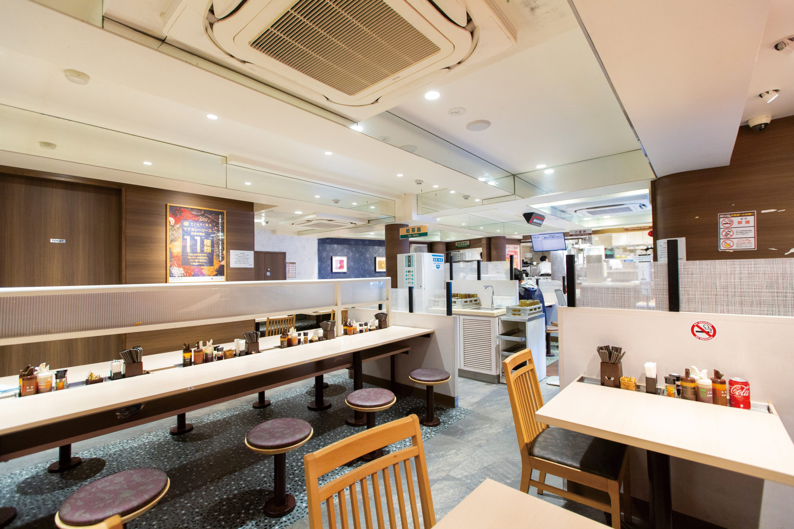 餐厅空间宽敞,约有 40 个座位,主要是柜台式餐桌,方便单身女性入座。